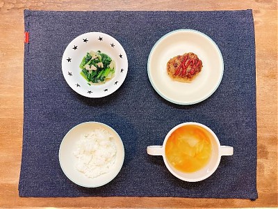 ◇ハンバーグ◇ほうれん草とベーコンのソテー